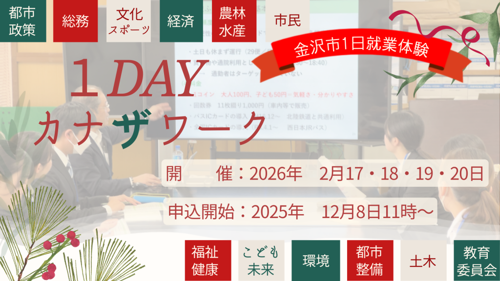 <Kコース:2月20日>令和7年度「1Dayカナザワーク~金沢市1日就業体験~」参加申込フォーム