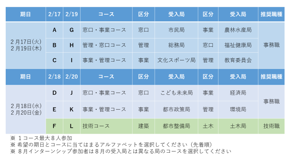 Jコース 窓口・事業コース(窓口:こども未来局、事業:経済局)