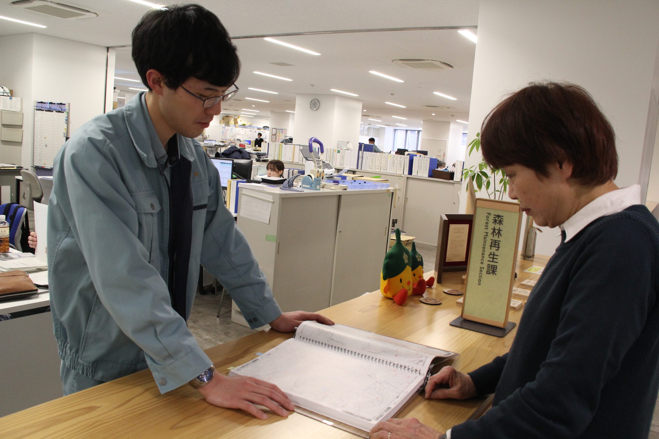 就職の際には、実際に外へ出て森林を歩き、その森林の変化を見続けられる仕事をしたいと考えるようになった中で、金沢市に林業専門職の採用枠があることを知り、地域に密着した森林のあり方を考える市役所の仕事に興味をもちました。