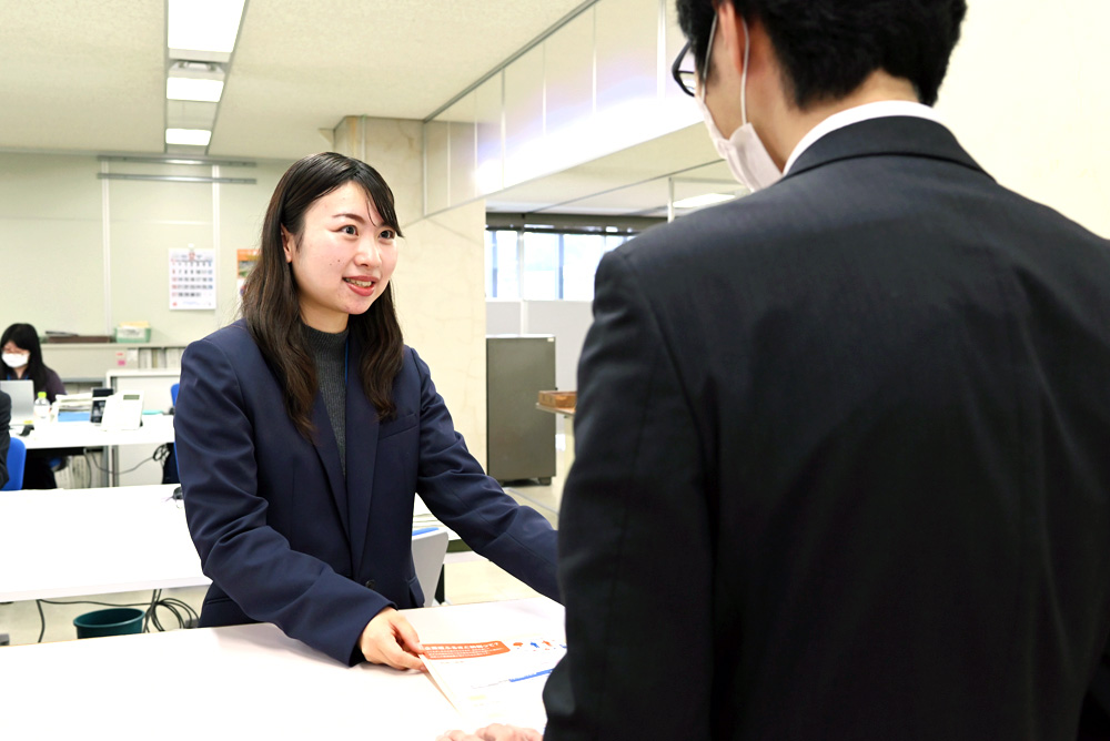 大学では社会学を専攻し、就職先については具体的なイメージがなかったのですが、大学3年生の夏に金沢市役所のインターンシップに参加したことで、市役所で働きたいという思いが強くなりました。期間中は福祉関係の課で職場を体験し、「高齢者の孤独死を防ぐためには」というテーマを事前に与えられ、自分なりに調べたことをプレゼンテーションで発表しました。