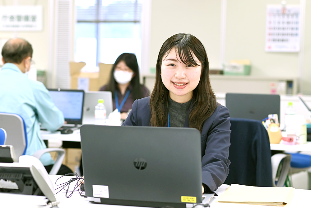 総務課で、市有財産の管理や建物・公用車の保険業務、市役所や美術館の駐車場運営・管理を担当しています。業務に就くまでは、市役所が管理、運営する物件がこれほど幅広いとは考えたこともありませんでした。市有財産の管理は決して華やかとはいえず、実務としては地道な作業の多い業務です。