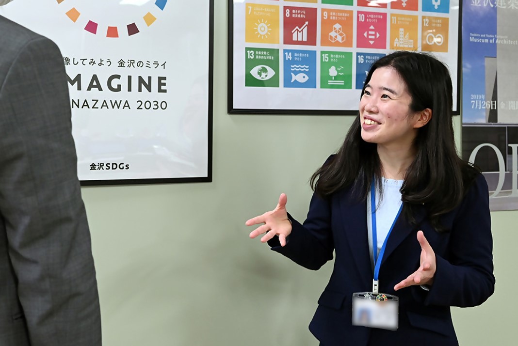 SDGsの推進や「ユネスコ創造都市ネットワーク」加盟都市としての金沢市の事業、周辺市町との連携を図る「石川中央都市圏」の推進など、金沢市を中心とする自治体や各種団体との連携に関することにも携わっています。