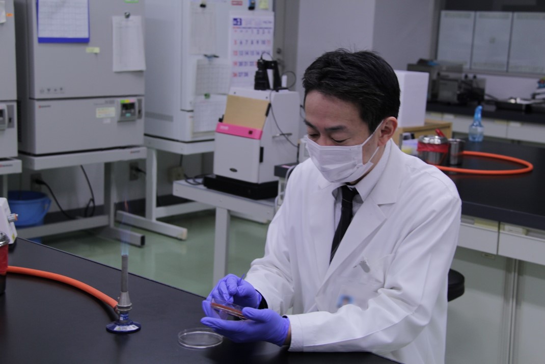 平成25年に試験検査課の微生物検査担当に配属され、そこでは、食品の規格基準検査や食中毒や感染症等の検査を行っていました。細菌やウイルスによる食中毒が疑われた場合、原因を特定するために、多種の培地を使って細菌の培養を行い、同時にウイルスの遺伝子を抽出しPCR検査を行います。さらに見出した細菌やウイルスの毒素産生性、抗原型別や遺伝子型別など多くの追加検査を行います。原因となった細菌やウイルスを見つけ出すことで、食中毒事件の原因究明や今後の予防に繋がるので非常にやりがいのある職務でした。最近では新型コロナウイルスのPCR検査に従事し、感染症対策に関わりました。