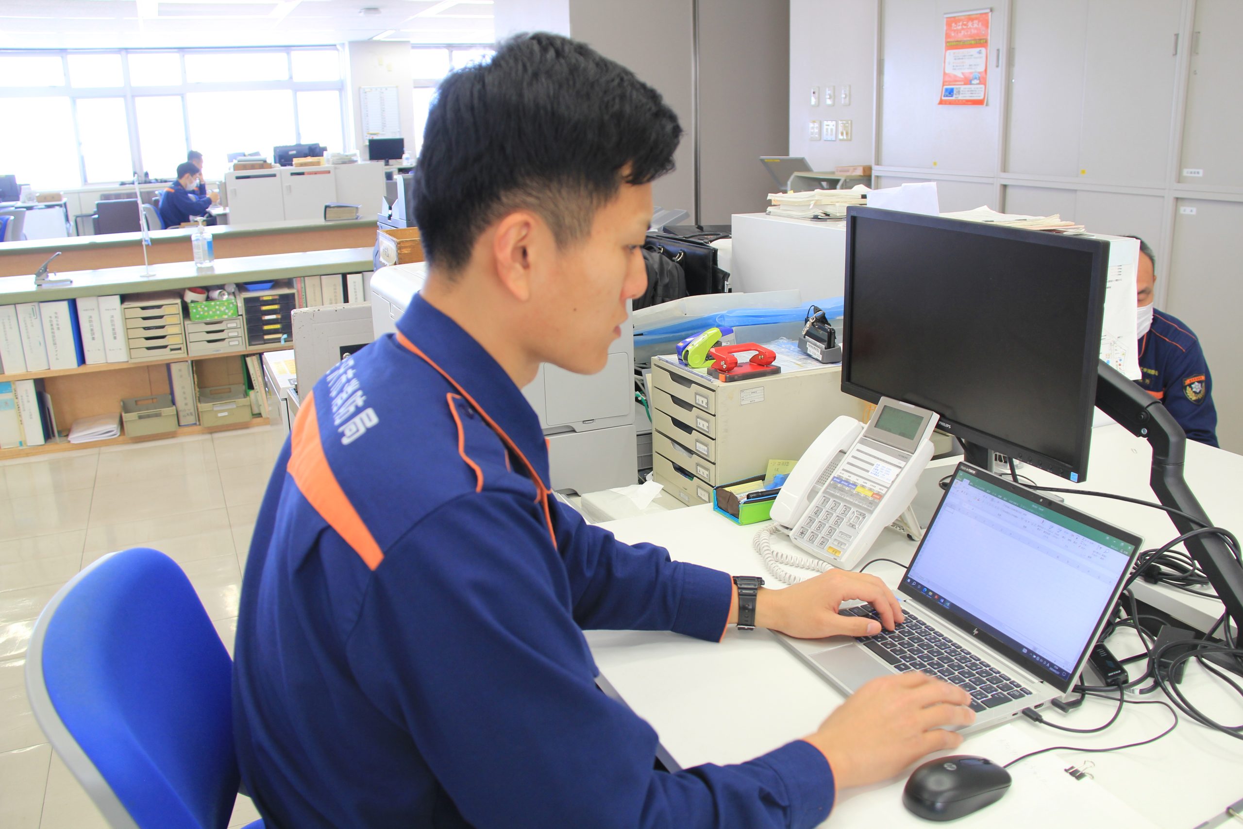 現在は、「火災予防」に携わる業務をしています。消防の業務は、消火、救急、救助活動などをイメージする方が多いと思います。私が担当している火災予防業務は、その名のとおり火災の発生を予防することを目的としています。主な業務内容は各種申請書類の審査や、事業所への立入検査を行い、関係者に対して火災の危険がある場合に是正指導を行います。また、火災予防についての広報活動を金沢市内で定期的に行っています。
