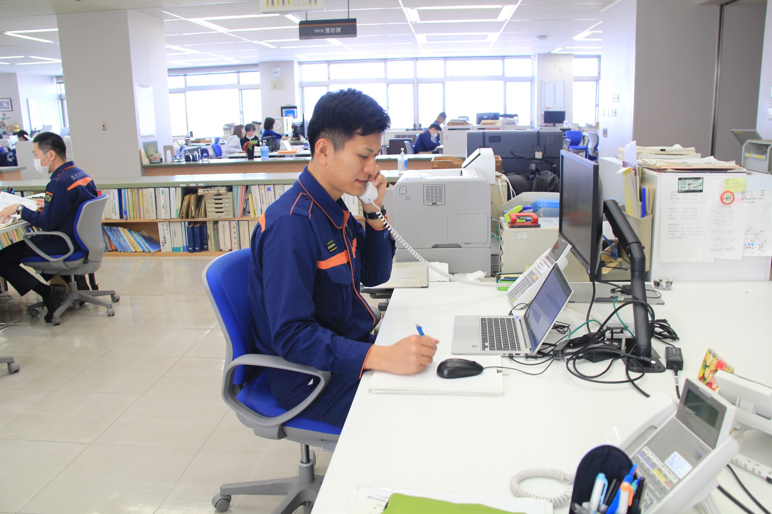 私たちの職場は基本的に隊や係の複数人で業務を行います。ときには難しい事案もありますが、一人ではありません。頼もしい先輩職員とともにみんなで乗り越えられます。